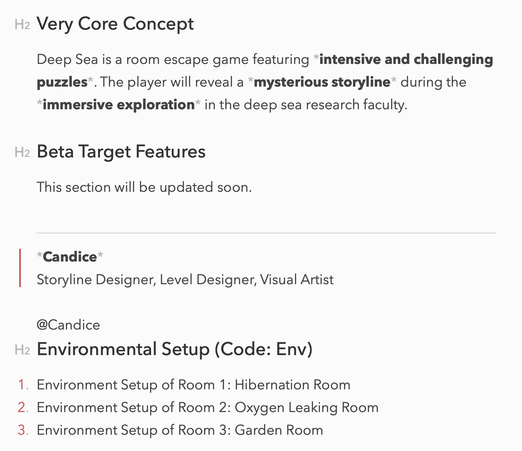 (Deep Sea Game) Team Management, Game Design Documents & Team Coordinating /